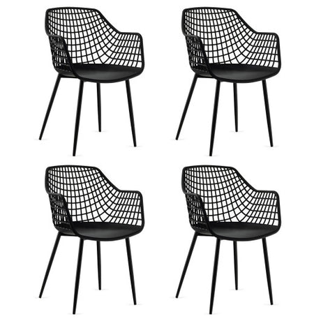Set of 4 Heavy Duty Modern Dining Chair with Airy Hollow Backrest-Black