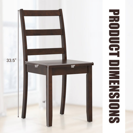 Set of 2 Wood Dining Chairs with Solid Rubber Wood Legs-Brown