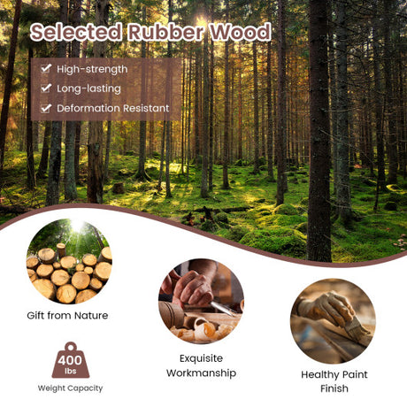 Set of 4 Wooden Farmhouse Kitchen Chairs with Rubber Wood Seat