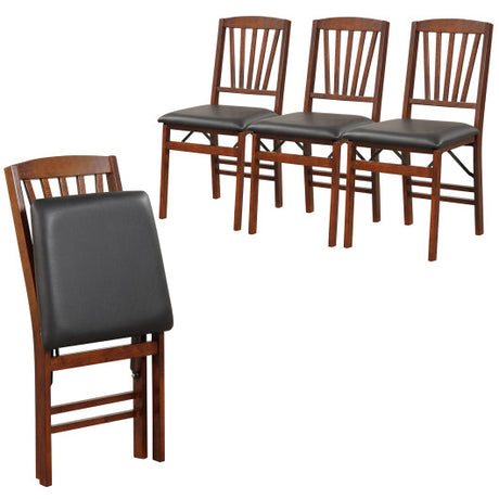 Set of 2 Folding Chairs with Padded Seat and Rubber Wood Frame-Brown