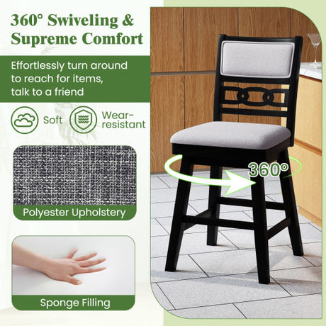 Counter Height Swivel Bar Stools Set of 2 with Back and Solid Rubber Frame-24