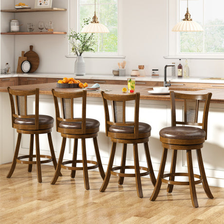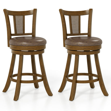 29 Inches Swivel Counter Height Barstool Set of 2 with Rattan Backrest and Footrest-Brown