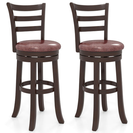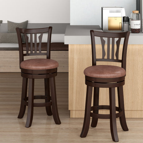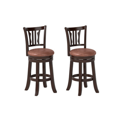 Set of 2 Bar Stools 25" Swivel Bar Chairs Leathaire Counter Height Stools-Brown