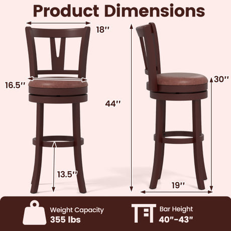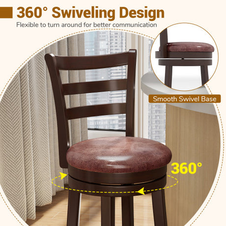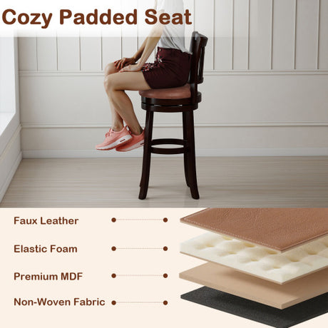 Counter Height Swivel Barstools Set of 2 with Faux Leather Seat and Wrap-around Footrest-29