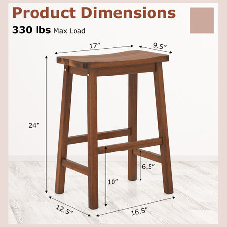 Set of 2 Saddle-Seat Counter Height Stools with Curved Seat and Footrests-Walnut