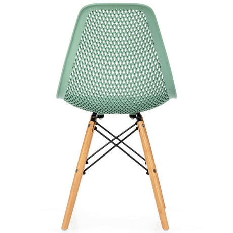 4 Pieces Modern Plastic Hollow Chair Set with Wood Leg-Green