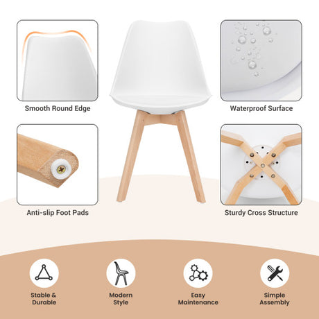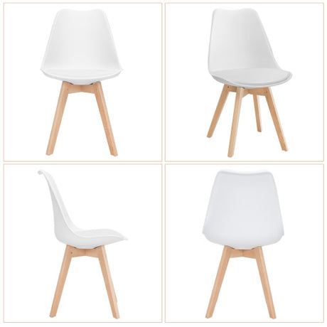 Set of 4 Dining Chairs Mid-Century Modern Shell PU Seat with Wooden Legs-White