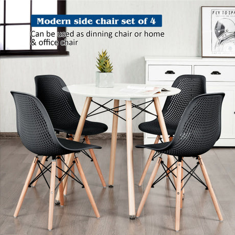 4 Pieces Modern Plastic Hollow Chair Set with Wood Leg-Black