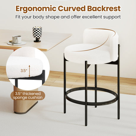 24 Inch Boucle Counter Stools Set of 2 with Curved Backrest