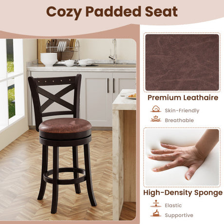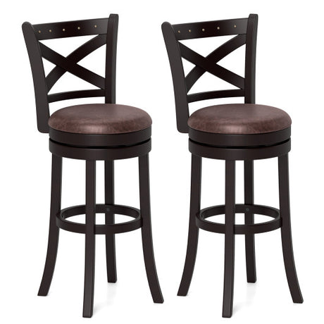 30.5 Inch Bar Height Chairs Set of 2 Swivel High Barstool with Padded Seat and Backrest-Brown