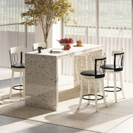 Set of 2 Bar Stools Swivel Bar Chairs with Footrest and Hollowed Backrest-26 inches