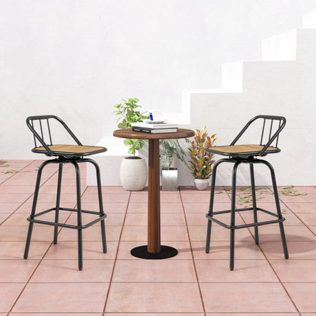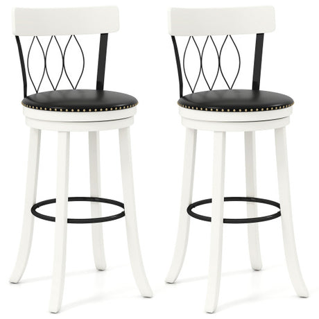 Set of 2 Bar Stools Swivel Bar Chairs with Footrest and Hollowed Backrest-30 inches