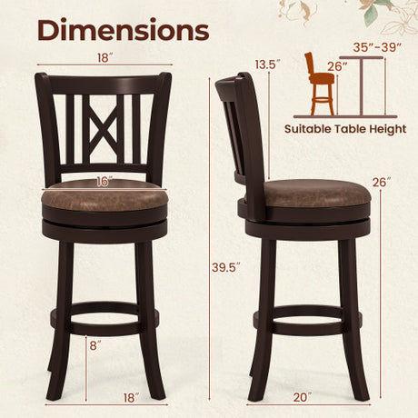 Swivel Bar Stools Set of 2 with Footrest and Rubber Wood Legs-Brown