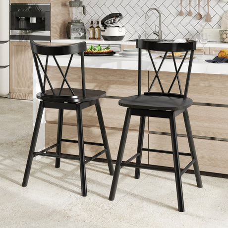 24.5 Inch Swivel Wooden Bar Stools Set of 2 with Rubber Wood Legs and Low Back-Walnut