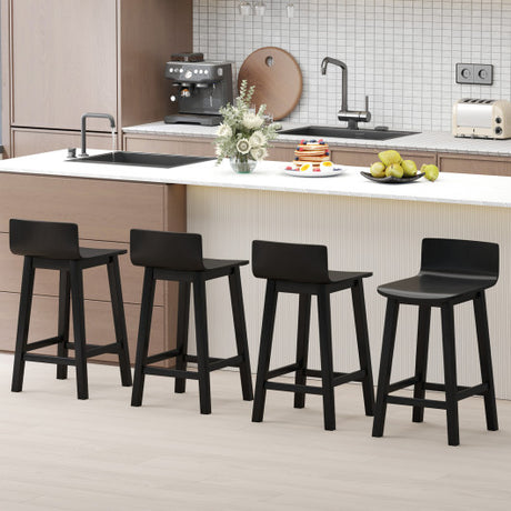 Wood Bar Stools Set of 2 with Solid Back and Seat-Black