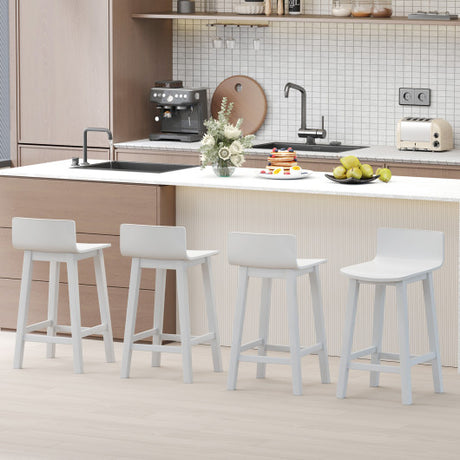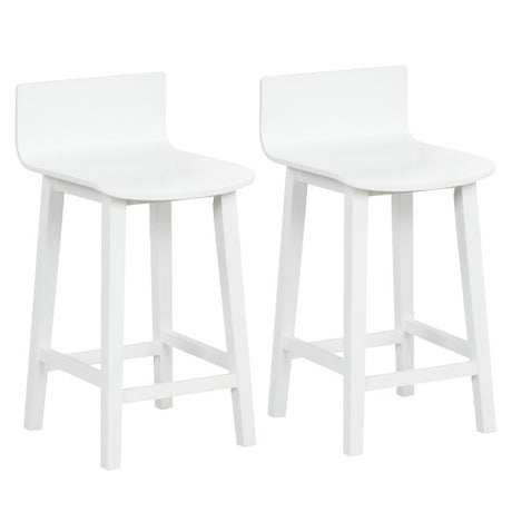 Wood Bar Stools Set of 2 with Solid Back and Seat-White