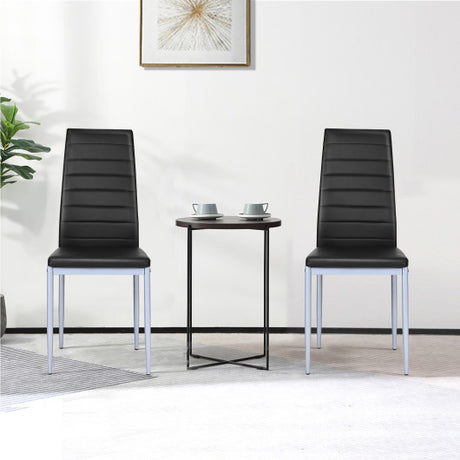 4 pcs PVC Leather Dining Side Chairs Elegant Design -Black