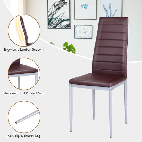 4 pcs PVC Leather Dining Side Chairs Elegant Design -Coffee