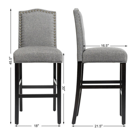 2 Pcs Fabric Nail Head Counter Height Dining Side Chairs Set-Gray