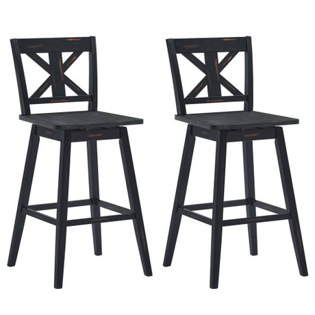 Set of 2 29 Inch Swivel Bar Height Stool Wood Dining Chair Barstool-Black