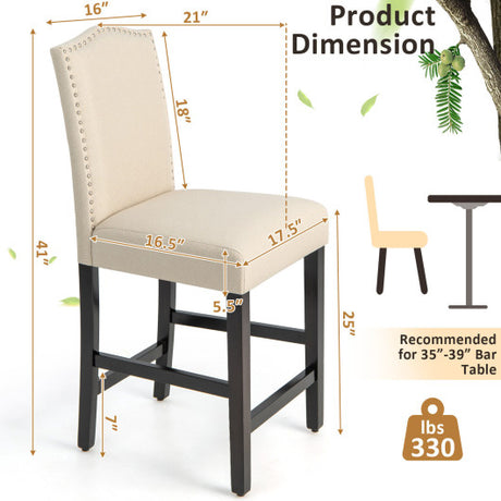 2 Pcs Fabric Nail Head Counter Height Dining Side Chairs Set-Beige