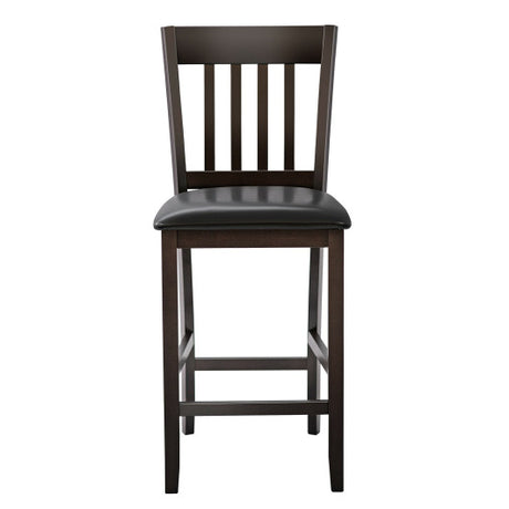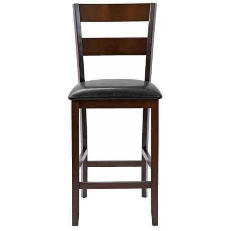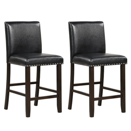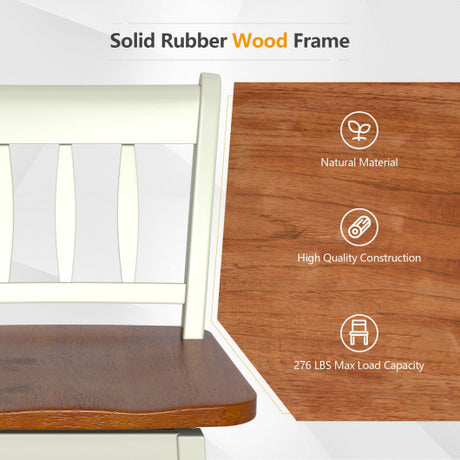 2 Pieces Counter Height Chair Set with Leather Seat and Rubber Wood Legs