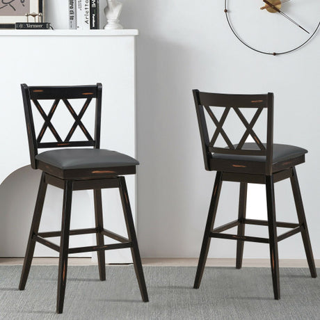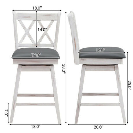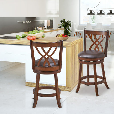 2 Pieces 360 Degree Swivel Wooden Counter Height Bar Stool Set with Cushioned Seat-25 inches