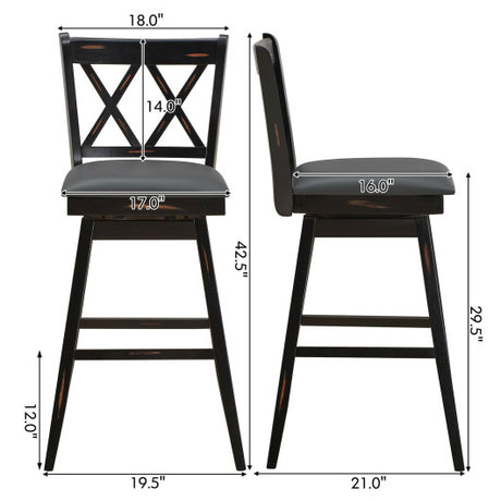 Set of 2 29-Inch Swivel Leather Padded Dining Bar Stools