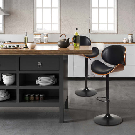 Adjustable Swivel Bar Stool with PU Leather-Black