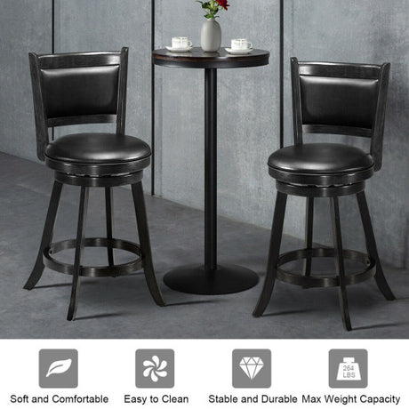 2 Pieces 24 Inches Swivel Counter Stool Dining Chair Upholstered Seat-Black