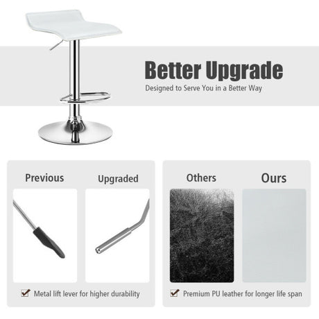 Set of 2 Adjustable PU Leather Backless Bar Stools-White