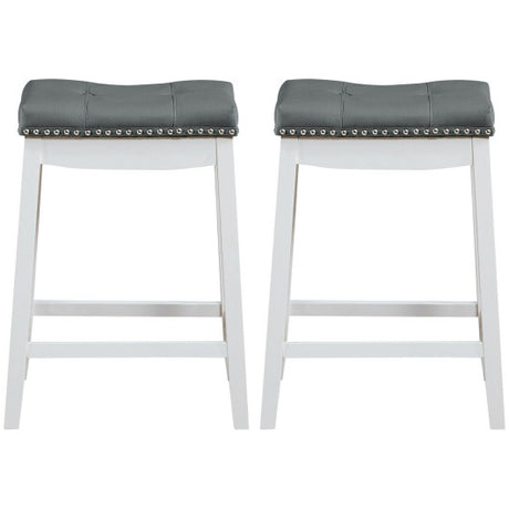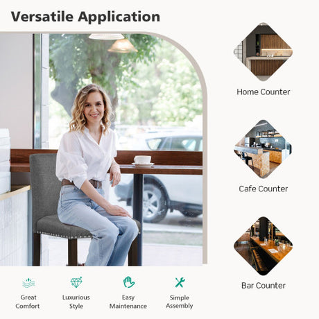 2 Pcs Fabric Nail Head Counter Height Dining Side Chairs Set-Gray