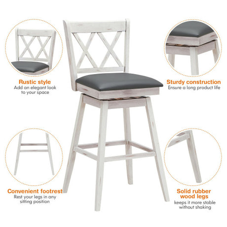 2 Pieces 360 Degree Swivel Wooden Counter Height Bar Stool Set with Cushioned Seat-31 inches
