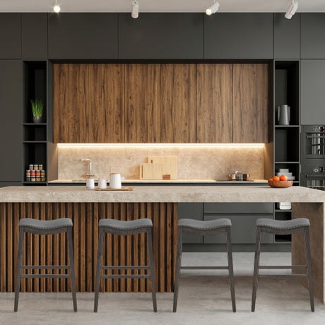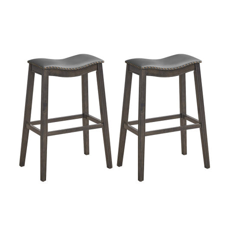 29 Inch Set of 2 Backless Wood Nailhead Barstools with PVC Leather Seat-Gray