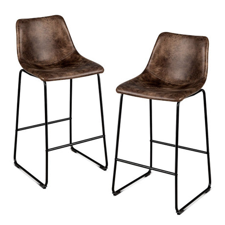 2-Pieces Upholstered Bar Stools Counter Height Chairs with PU Leather Cover