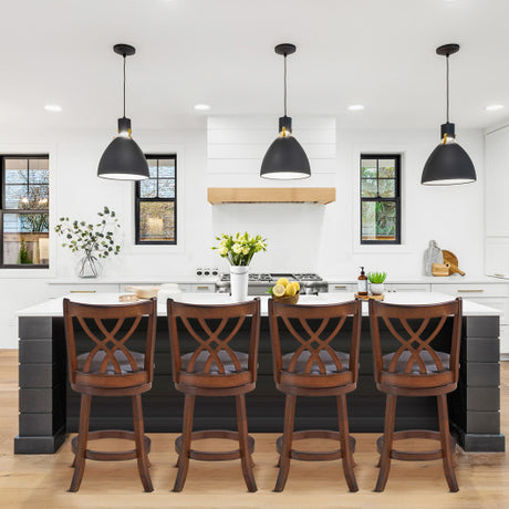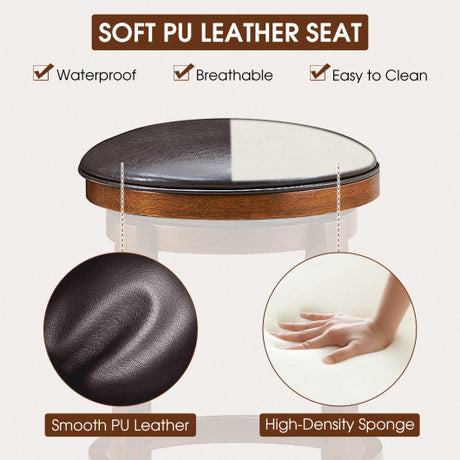 360° Swivel Counter Height Chairs with PU Leather Cushioned Seat and Footrests-26 inches
