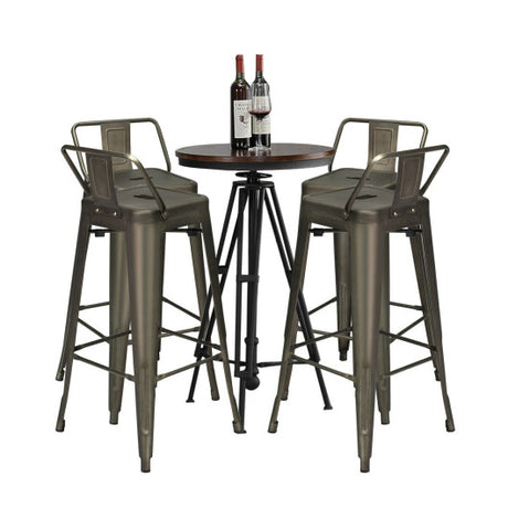30 Inch Set of 4 Metal Counter Height Barstools with Low Back and Rubber Feet-Gun