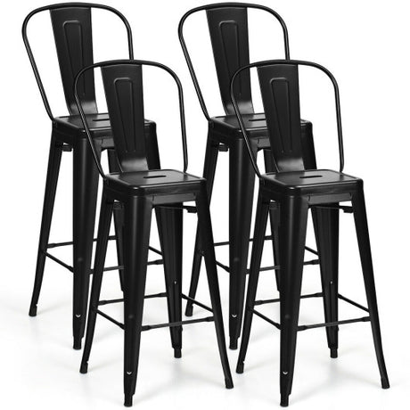 30" Height Set of 4 High Back Metal Industrial Bar Stools-Black