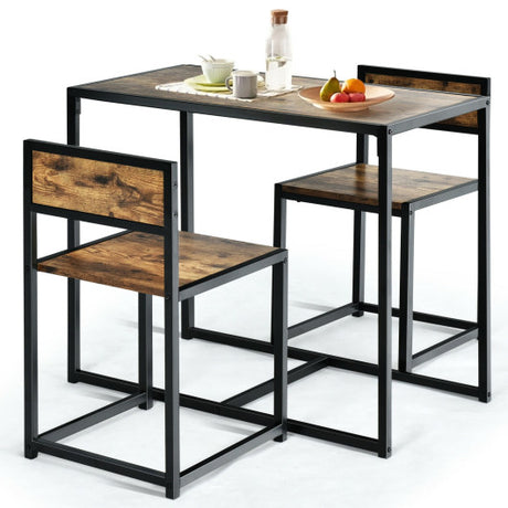 3 Pcs Dining Set Compact Table and 2 Chair with Metal Frame for for Small Space-Coffee