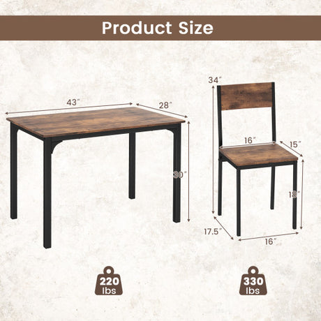 5 Piece Dining Table Set Industrial Style Kitchen Table and Chairs for 4-Rustic Brown