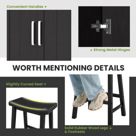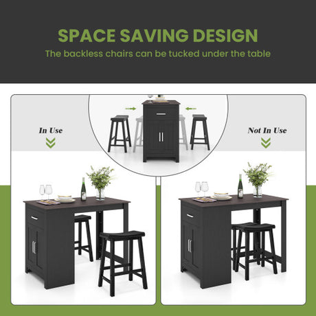 3-Piece Bar Table Set for 2 with 2 Saddle Stools for Dining Room-Black