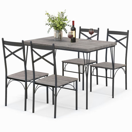 5-Piece Wooden Dining Set with Rectangular Table and 4 Chairs-Gray