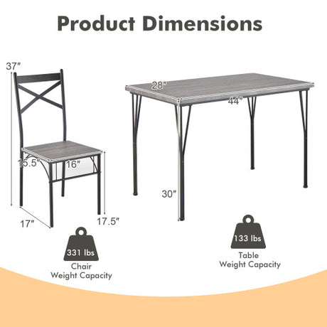 5 Pieces Dining Table Set with Metal Frame for Kitchen Dining Room-Gray