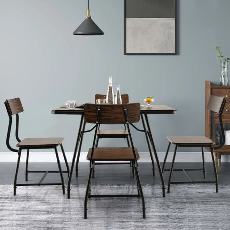 5 Piece Rectangular Dining Table Set with Metal Frame