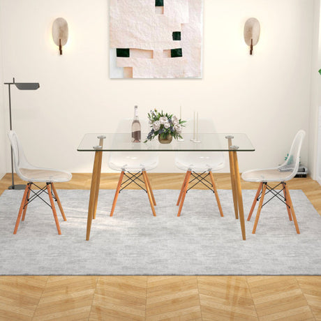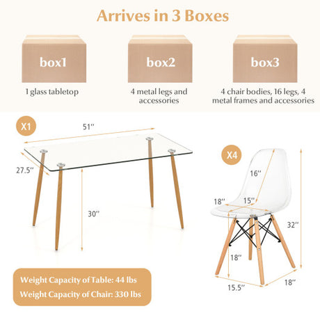 5 Pieces Rectangle Dining Table Set with 51 Inch Glass Tabletop-Transparent