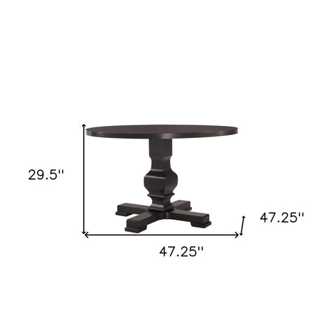 48" Black Wood Pedestal Base Round Top Dining Table