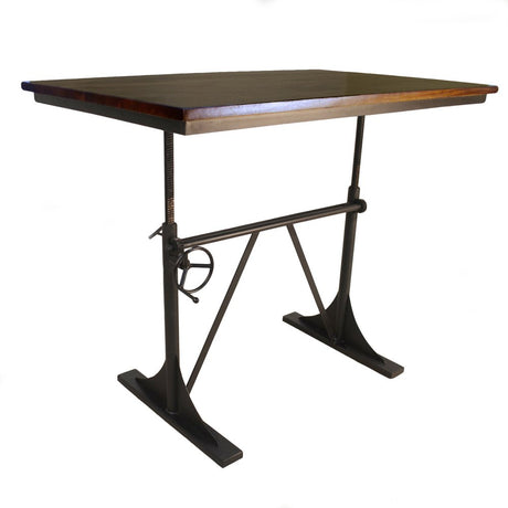 Adjustable Height Brown And Black Solid Wood And Iron Pedestal Base Round Top Dining Table