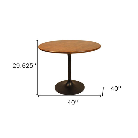 40" Brown And Black Rounded Solid Wood And Iron Pedestal Base Dining Table