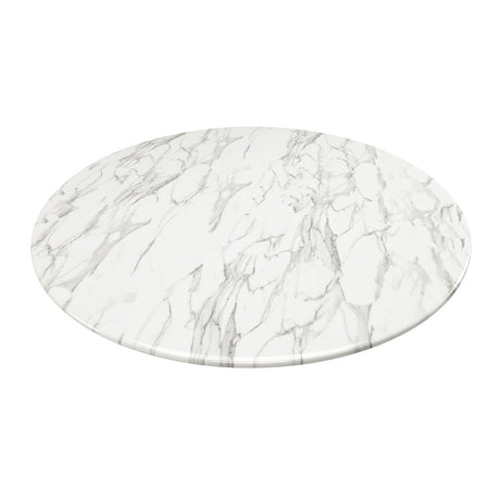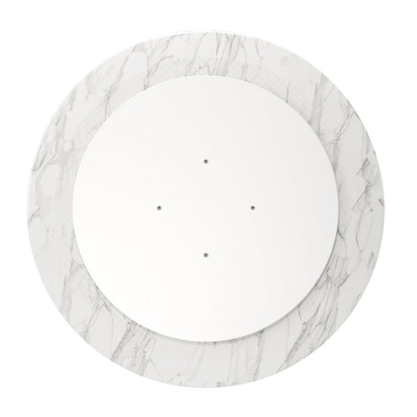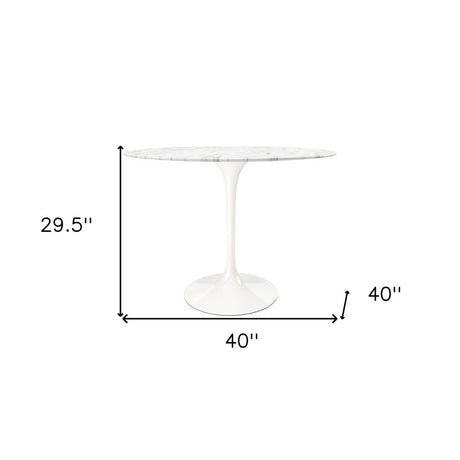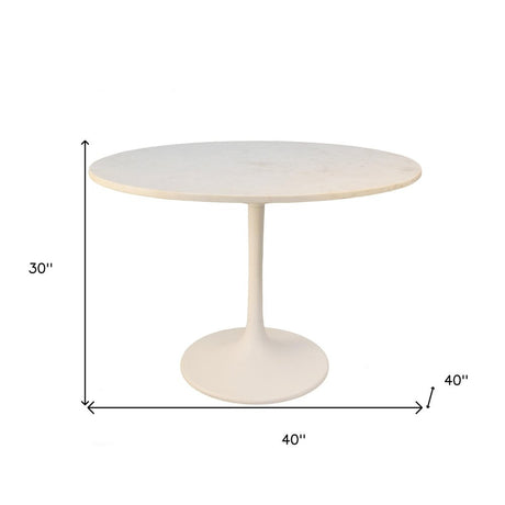 40" White Rounded Marble And Iron Pedestal Base Dining Table