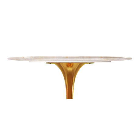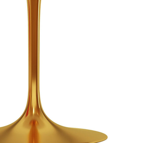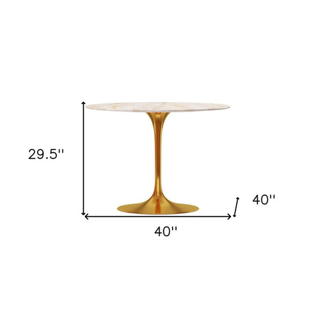 40" White And Gold Rounded Stone And Metal Pedestal Base Dining Table